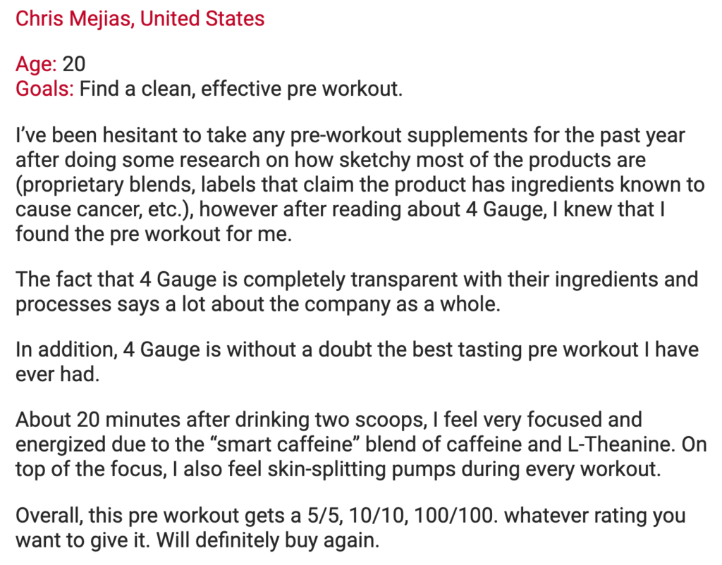 Many pre-workout products hide behind their product reviews, but 4 Gauge puts them in the open for everyone to see and read.